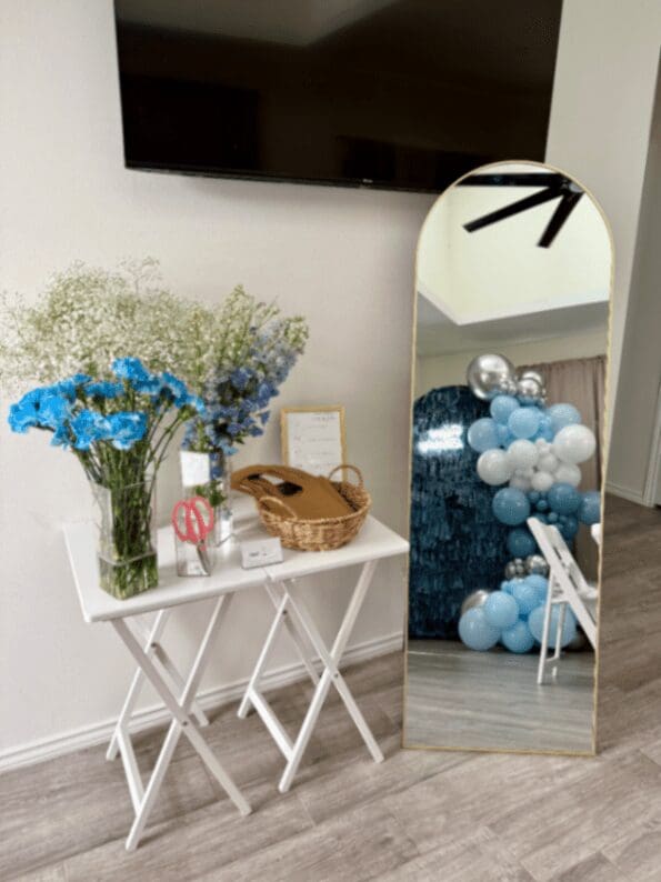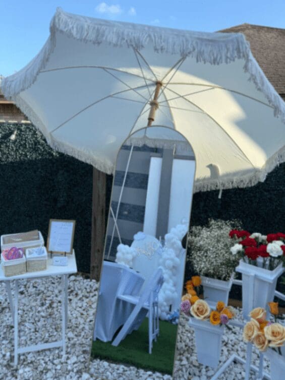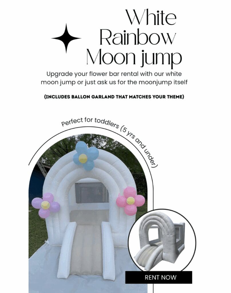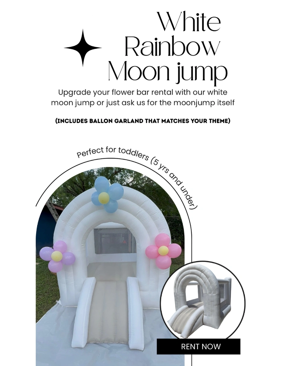 Moon jump for toddlers that can be added to your package (5 yrs and under) also it can be decorated with a ballon garland that matches your color scheme.